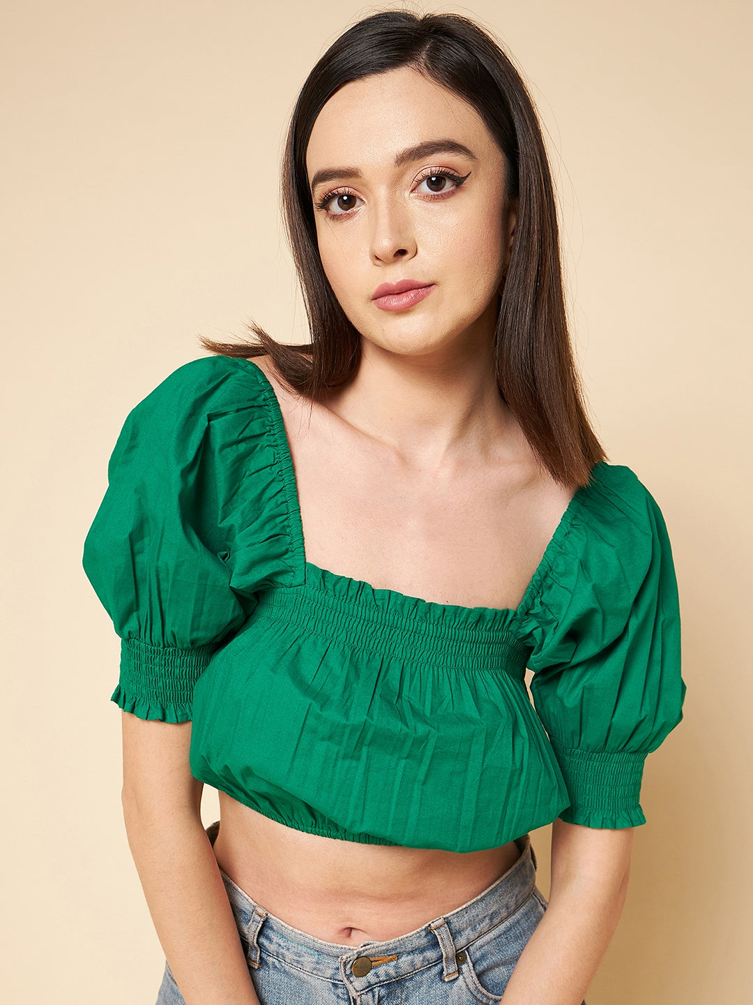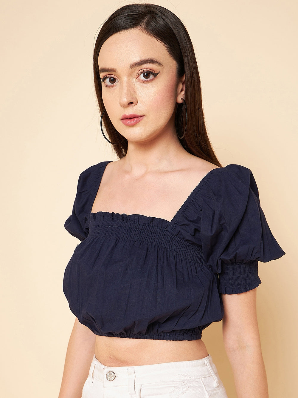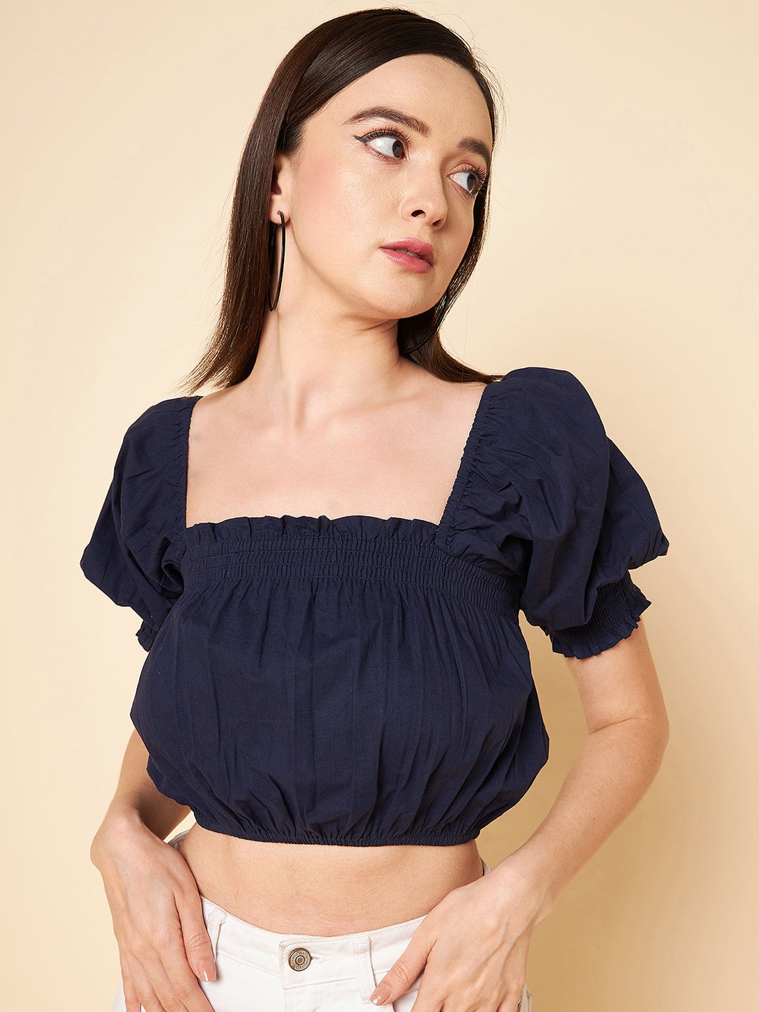 Puff Sleeve Cotton Pure Crop Fitted Top