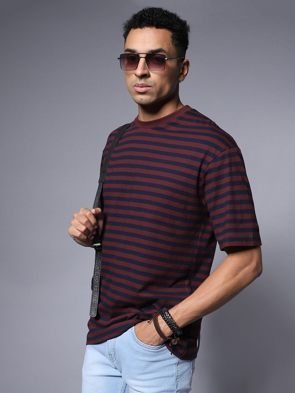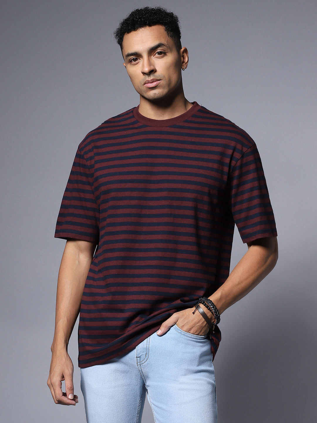 Plus Size Striped Round Neck Pure Cotton T-shirt