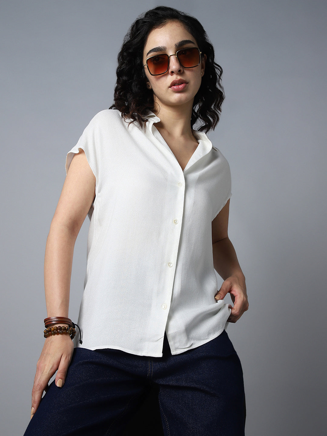 Solid Cotton Spread Collar Long Sleeves Boxy Longline Shirt