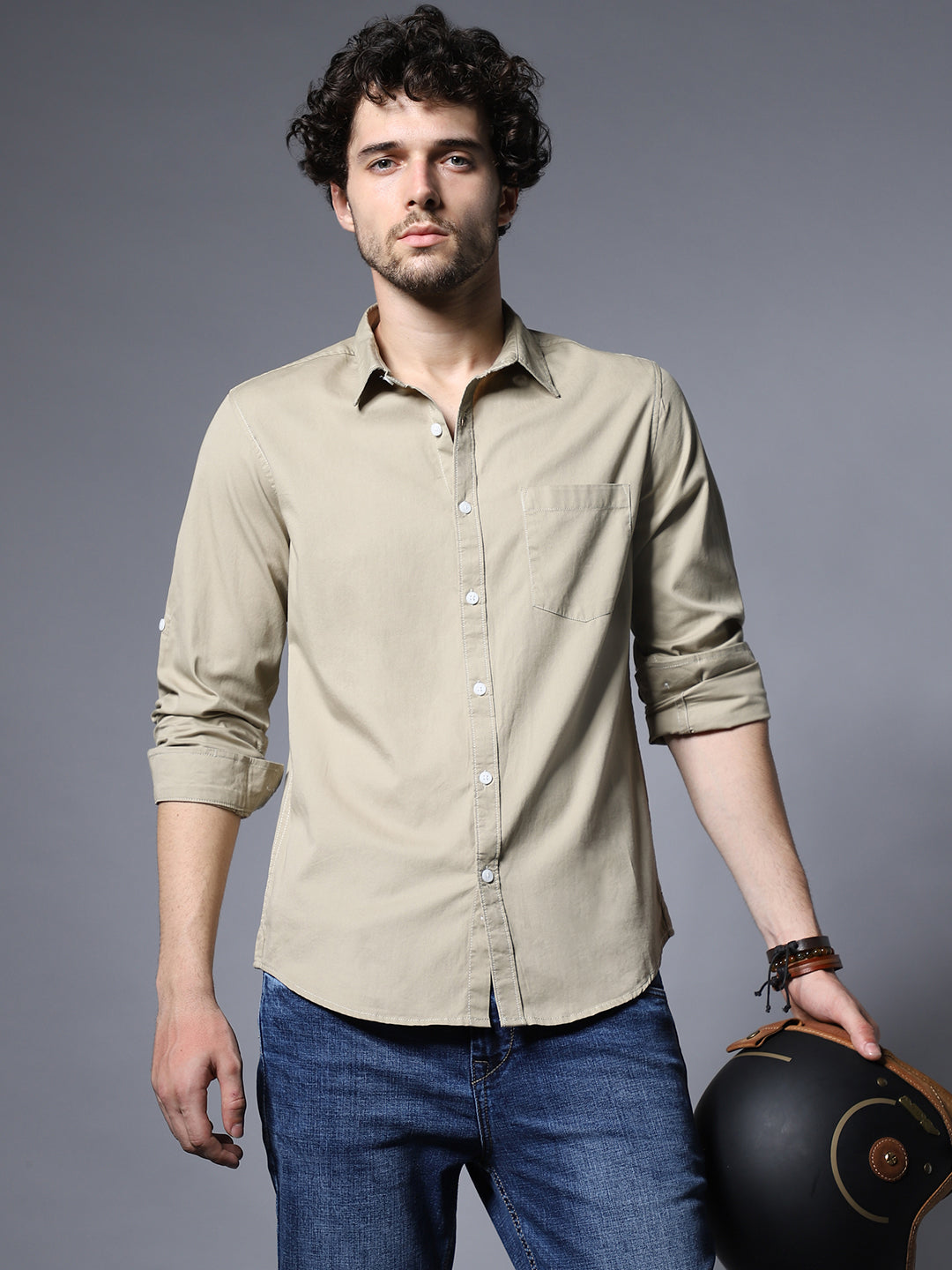 Classic Roll-Up Sleeves Pure Cotton Casual Shirt