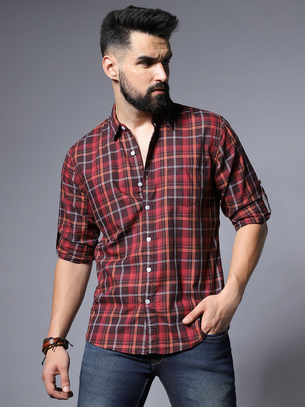 Classic Checked Roll-Up Sleeves Casual Pure Cotton Shirt