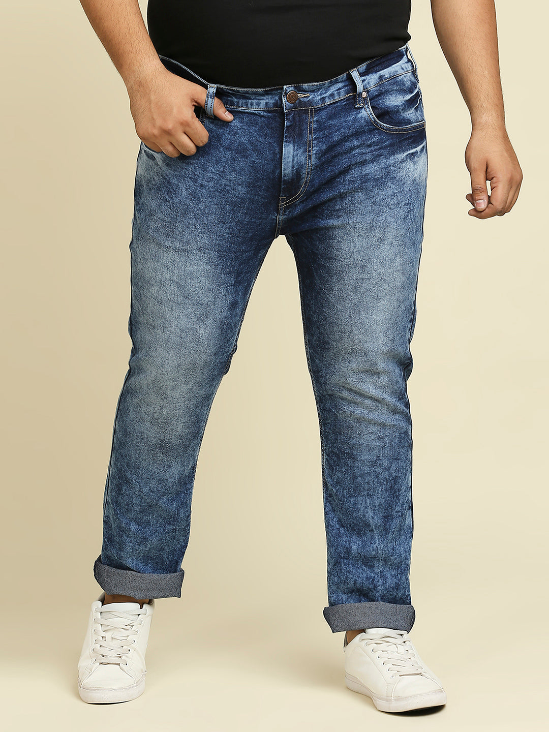 Men Plus Size Slim Fit Heavy Fade Stretchable Jeans