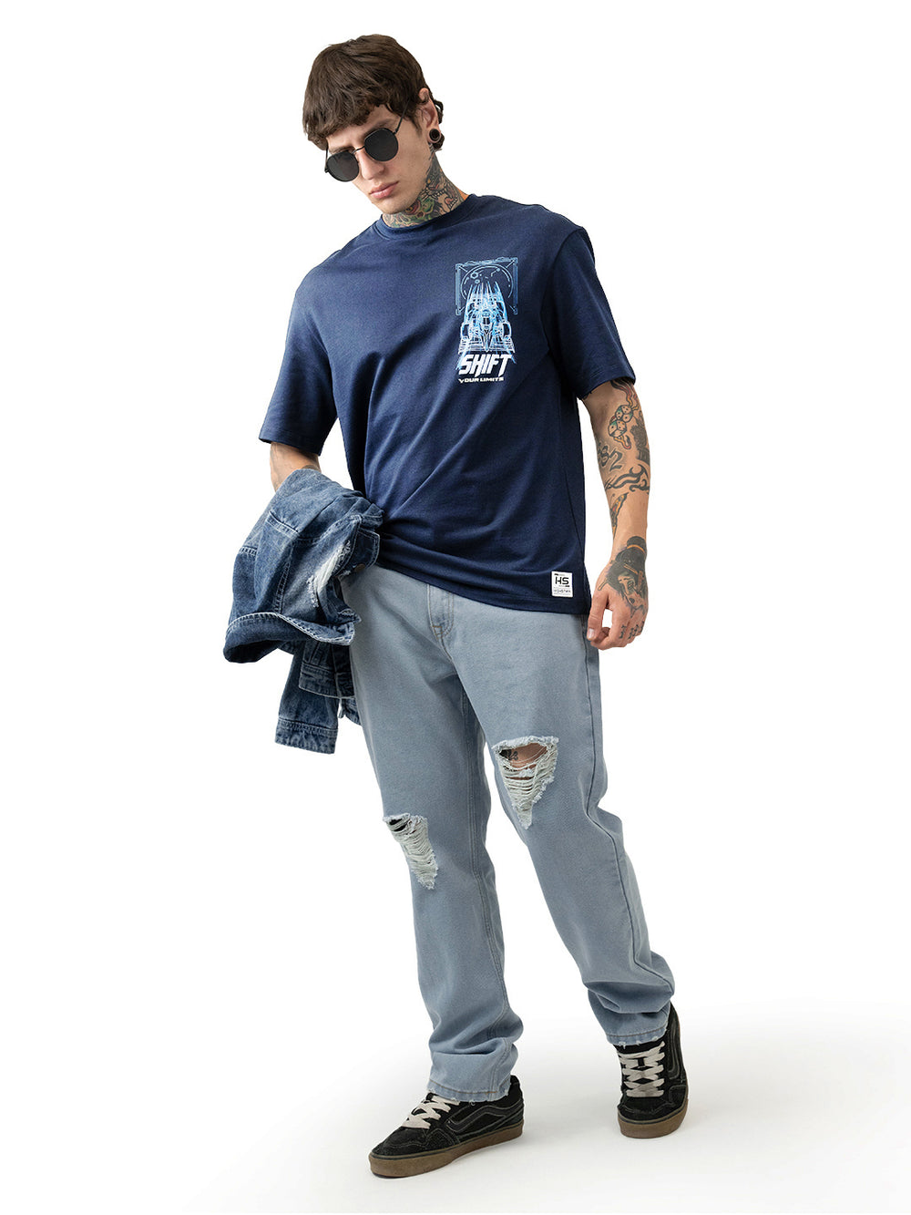 High Star Men Oversized Printed round neck short sleeve T-shirt