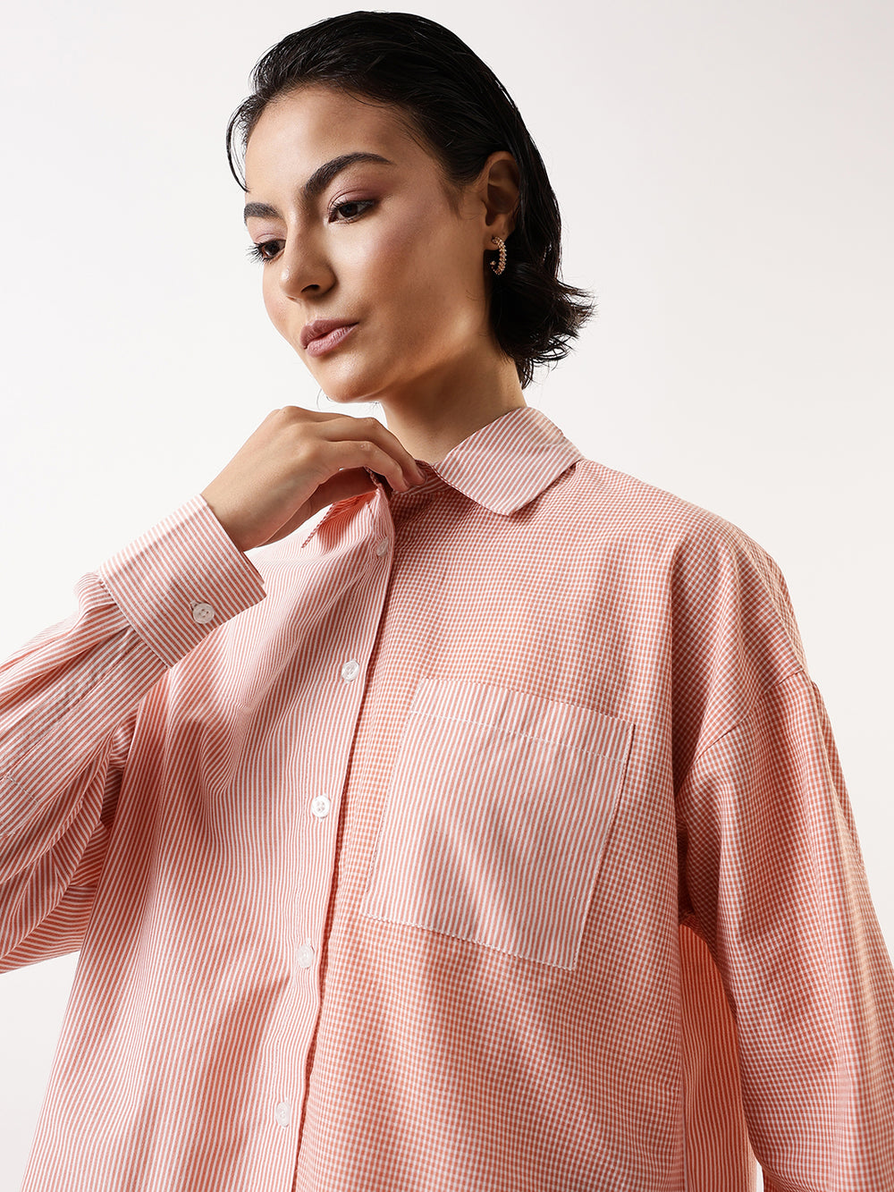 Hubberholme Women Comfort Oversized Fit Vertical Striped Pure Cotton Casual Shirt