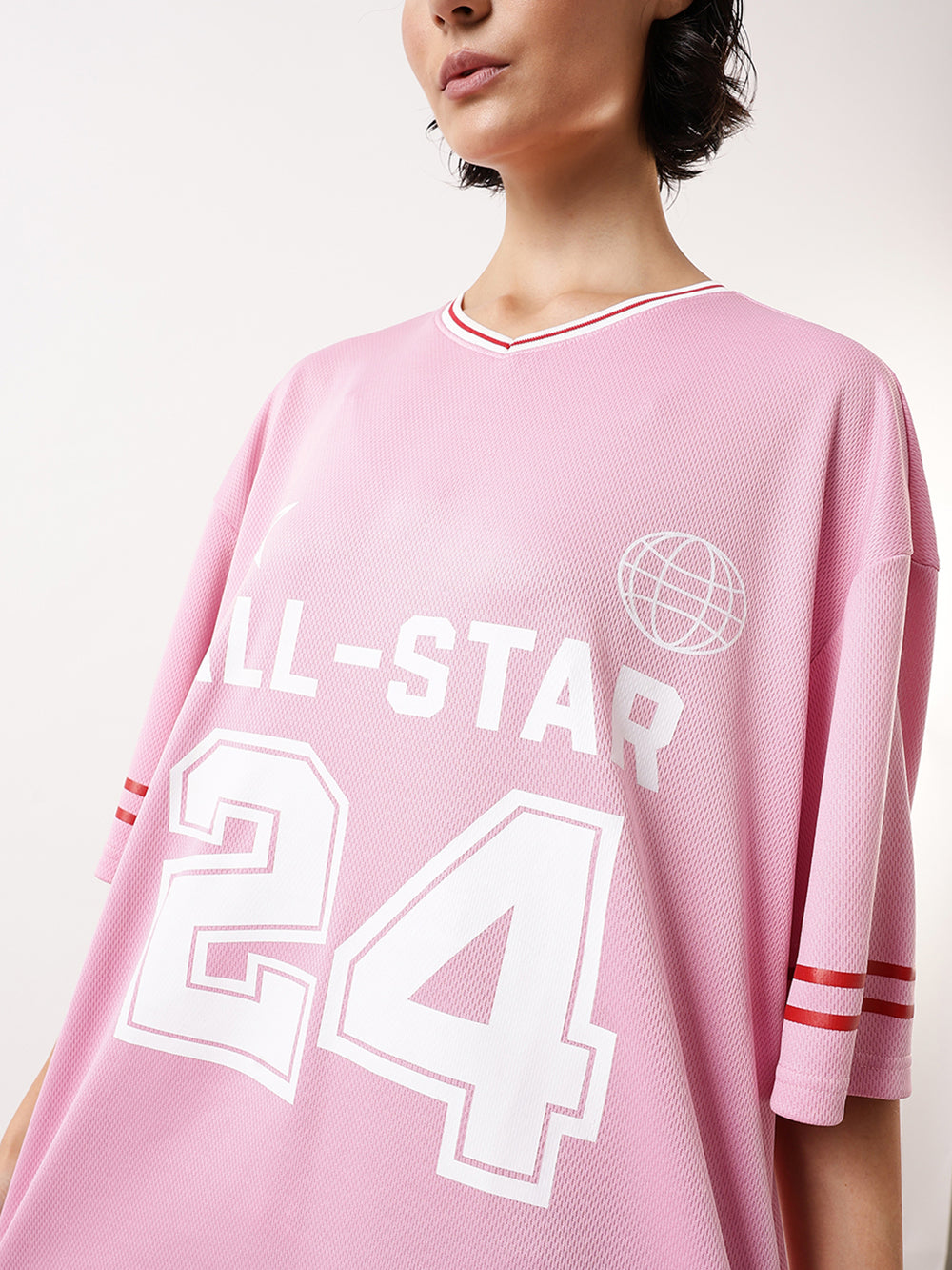 Hubberholme Typography Printed V-Neck Oversized T-shirt