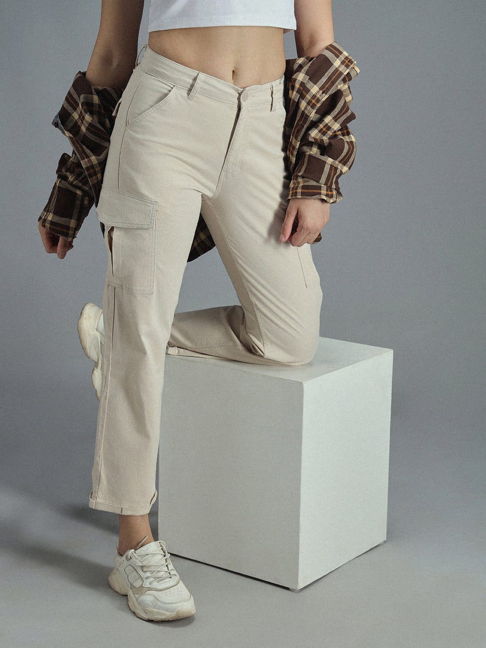 Women Straight Fit High-Rise cargo Trousers