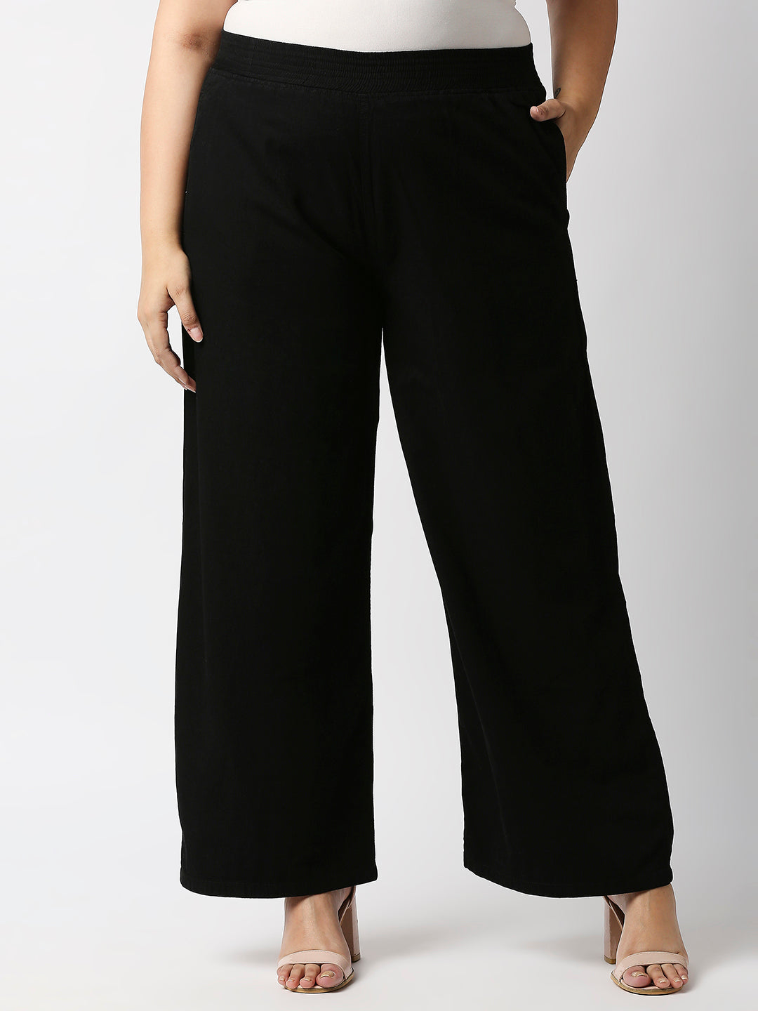 Women Plus Size Blue Solid Wide Leg Palazzos