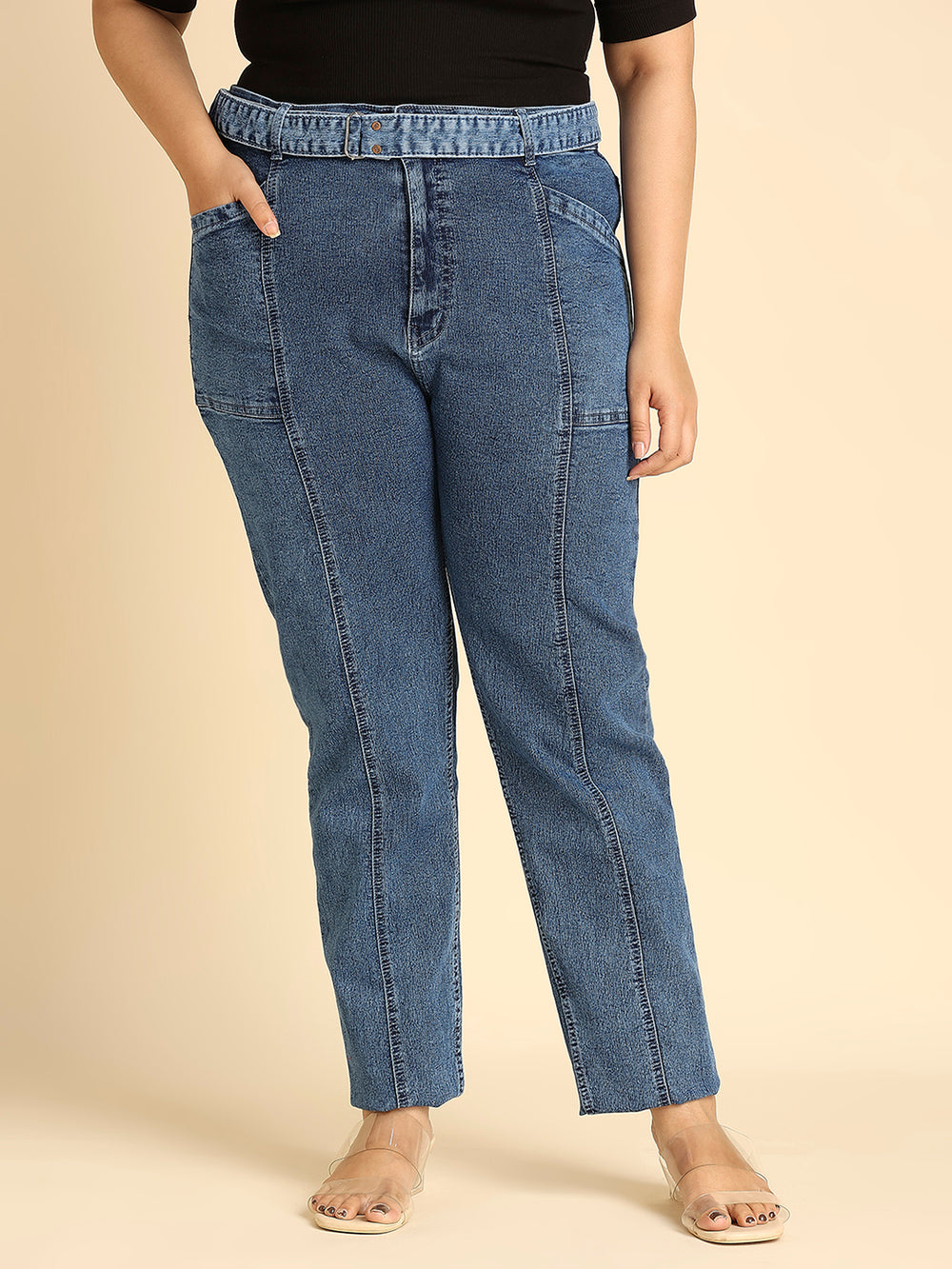 Women Plus Size Straight Fit High-Rise Stretchable Jeans