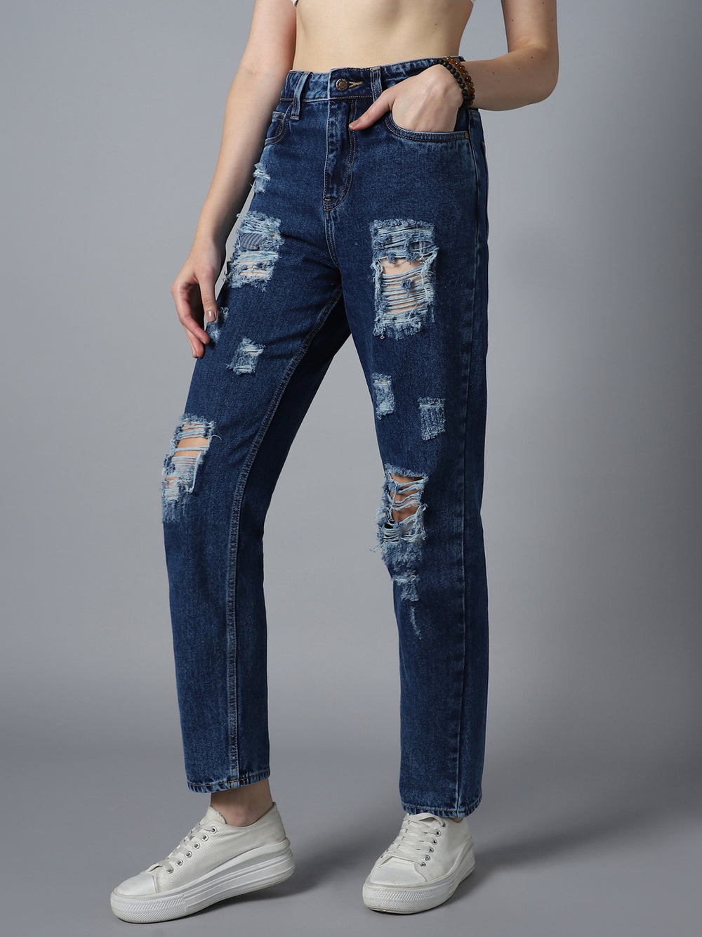 Women Dad Fit High-Rise Highly Distressed Light Fade Cotton Jeans