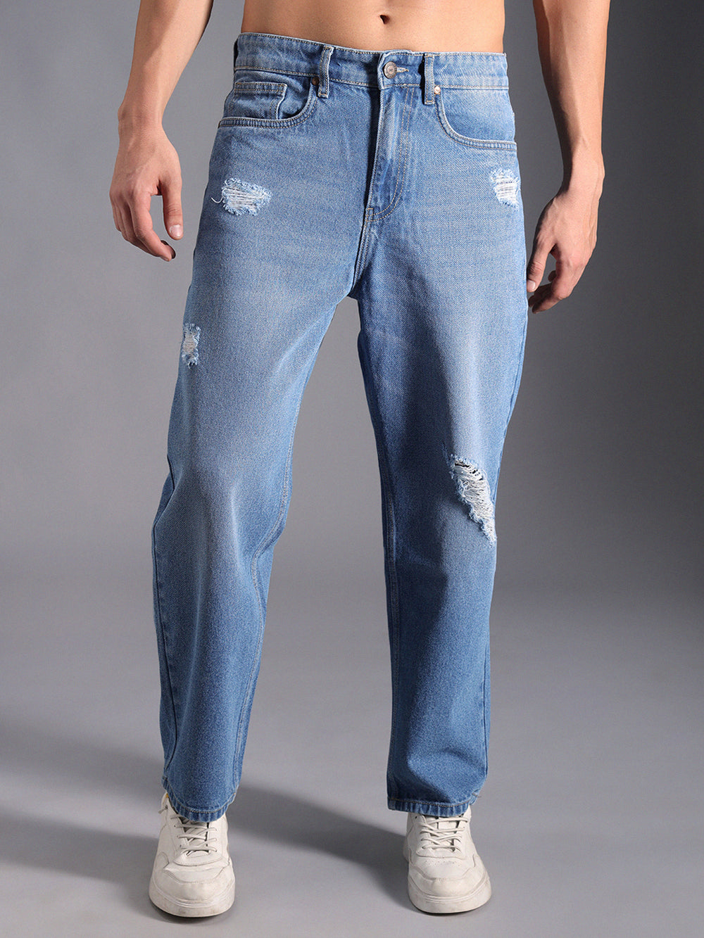 Men 90s Relaxed straight Fit Heavy Distressed Fade Cotton Jeans